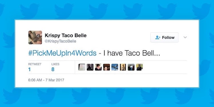 People on Twitter are having a blast and a half responding to #PickMeUpIn4Words with their ideal pickup lines.