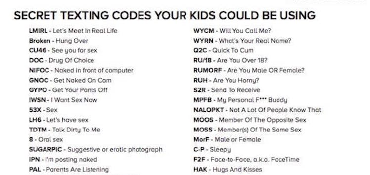 Also, this guide says "Q2C" — which means "quick to cum" — is a popular sext the teens are sending. Whatever you do, never send that code.