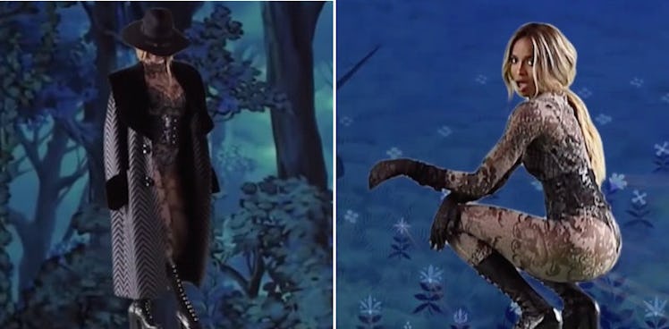 Then, we see Ciara dance in platform boots and a bodysuit while creepy unicorns float around her in the background.