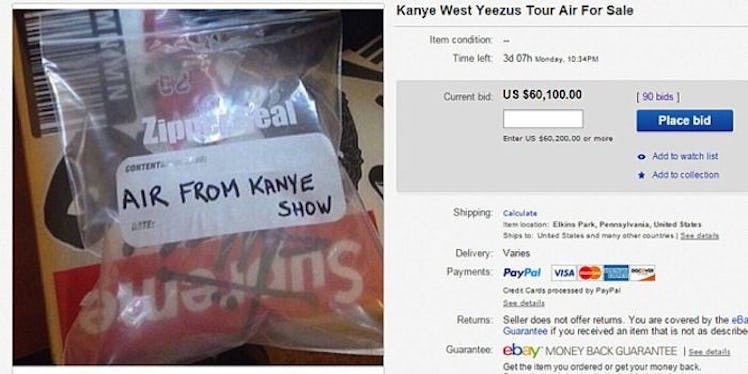 The eBay user stangeedon1 listed the item as follows: "Kanye West Yeezus Tour Air For Sale." The air was allegedly captured after he "held bag open and sealed air in."
