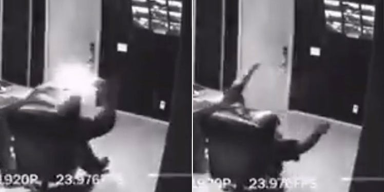 The shocking surveillance clip lacks a time stamp, so the exact time of the combustion wasn't documented.