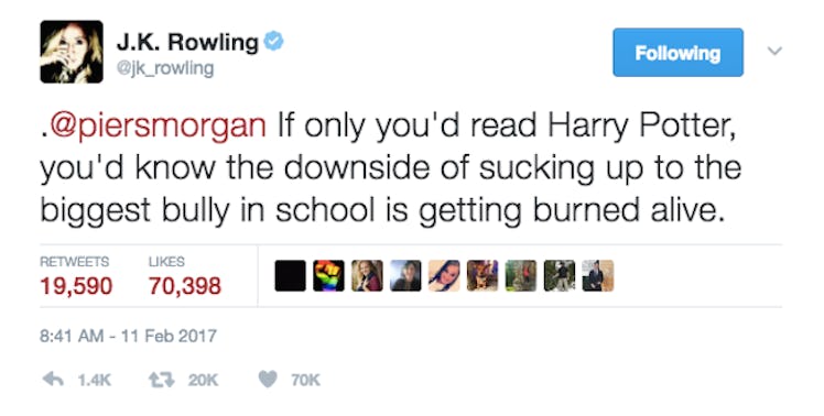 JK Rowling is at it again with the expert Twitter trolling. And this time, she's taking down British journalist and TV personality, Piers Morgan.