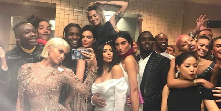 Kylie Jenner posted a low-key selfie, featuring Kim Kardashian, Kendall Jenner, A$AP Rocky, Frank Ocean, P. Diddy, Brie Larson, Paris Jackson, Ashton Sanders, Luka Sabbat, Michelle Monaghan and Lily Aldridge, with the caption "annual bathroom selfie."
