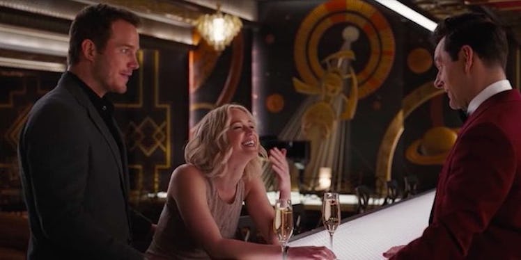 Or when Chris Pratt bangs the piano super hard, and Jennifer Lawrence dissolves into hysterics.