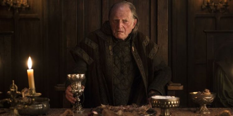 The Game of Thrones premiere opened with a sucker punch of a cold open. David Bradley, who plays Walder Frey, throwing yet another feast for his bannermen and relations.
