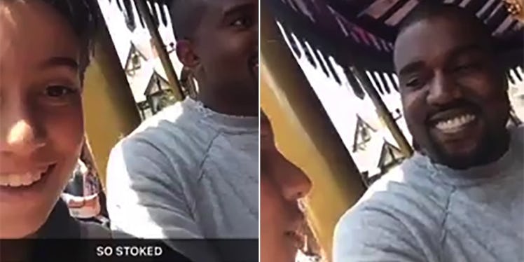 Kanye and Kim were enjoying a day at Disneyland for North West's third birthday. That's when some random kid spotted the couple and immediately whipped his phone out to post the whole interaction on Snapchat (of course).