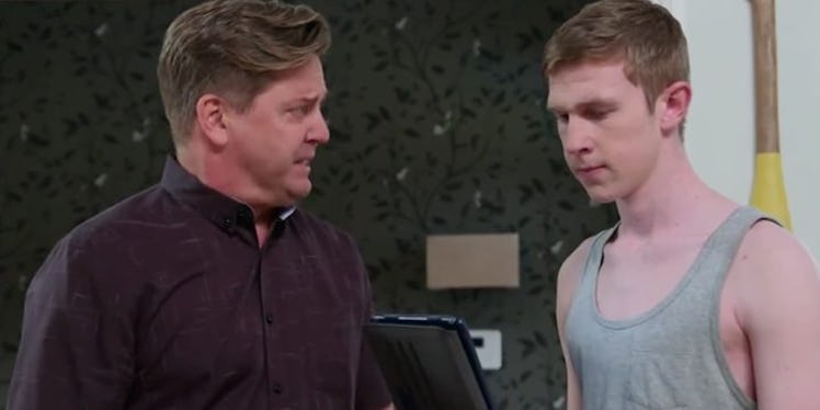 In the segment below, the cock-blocker father confronts his son with (I cannot believe I'm typing this) a picture of what is potentially his son's penis on his synced tablet.