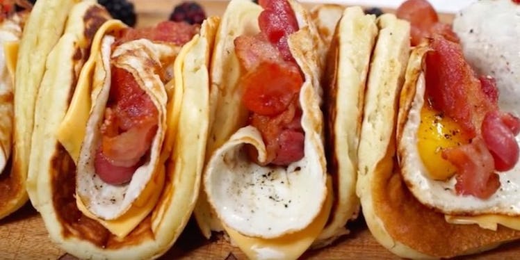 That's right. You can now start your morning off with some syrup-drenched pancake tacos filled with cheesy eggs and bacon. And there is no denying that these things look downright delicious.