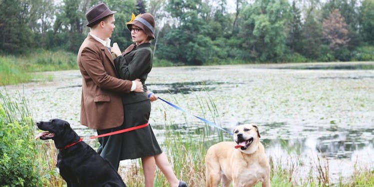 Chicago-based photographer Melissa Biggerstaff, her cousin Corinne and Corinne's fiancé were able to bring the scene to life using a perfect location, outfits similar those in the movie and some family dogs.