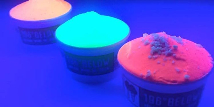 That's right, you can now get your favorite frozen snack in a glowing, fluorescent form made with "UV-reactive liquid coloring."