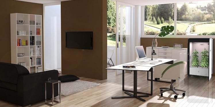 According to TechCrunch, the device, which looks like a suitcase from space, can fit up to two marijuana plants.