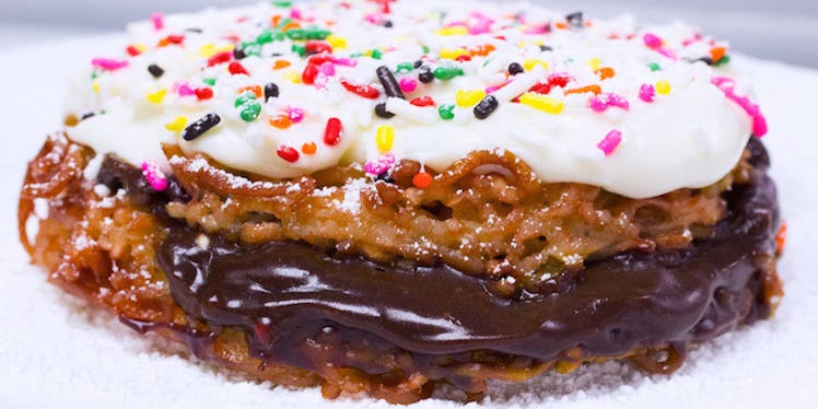 If you're wondering what a Ramnut tastes like, think funnel cake but slightly different. The ramen noodles are soaked in horchata. Then, they're deep fried and filled with cream cheese right before being coated with powdered sugar.