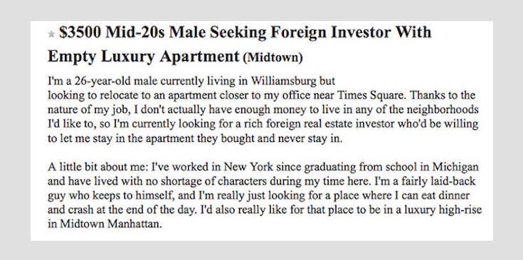 Guy On Craigslist Seeks Billionaire With Empty Apartment He Can Live In