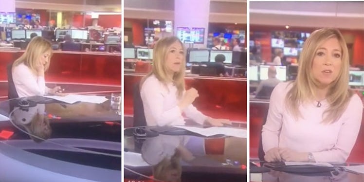 Seeing a reporter aimlessly staring at her phone is like seeing one of your teachers eating a pizza. News anchors cultivate a persona of weird, robotic professionalism, which is why it's always so fascinating to watch them mess up. This especially holds true for British reporters, who to my Americanized eardrums, all sound like they have read every book ever written.