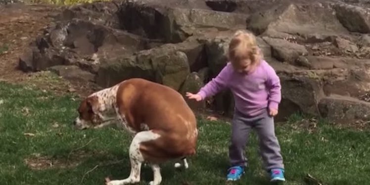 It tells us toddlers have more in common with dogs than they do with humans. This toddler definitely relates way better to the dog's struggle to force out a mammoth dookie than she does to her mother trying to force her to tie her shoes.