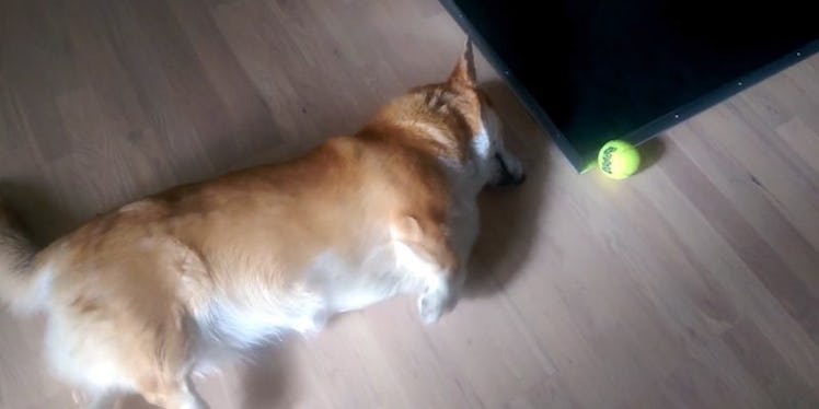 Lazy Corgi Forgets How To Walk While Trying To Reach Its Tennis Ball (Video)