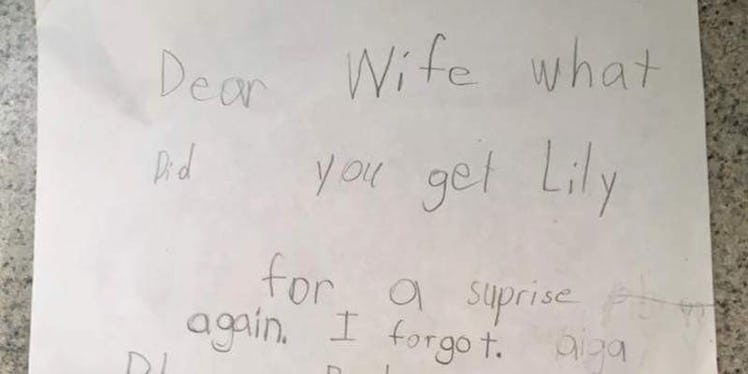 This precocious little kid tried to get her mom to reveal the surprise gift that she'd bought her daughter with this diabolically cute note.