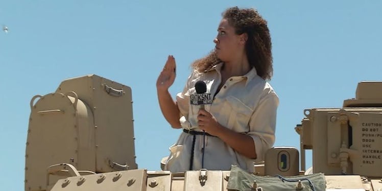 While covering live fire drills at a military base, the anchor was repeatedly bombarded with cicadas flying toward her face, and she reacted like any other person would -- by freaking out.