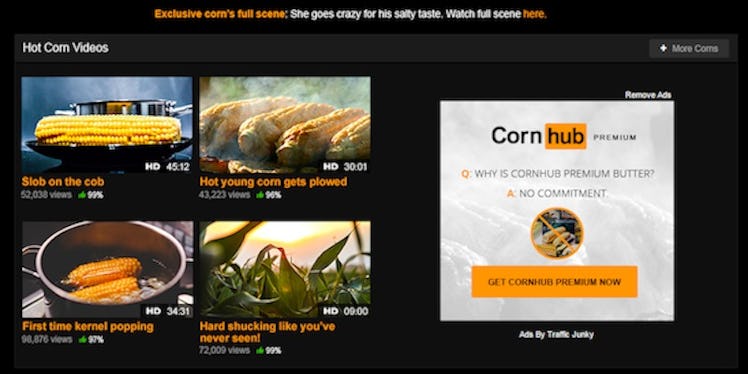 Instead of the NSFW content that normally graces the site's main page, anyone who visits the site today will be redirected to "Cornhub,"a website filled with the hottest videos of steamy corn on the cob.