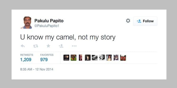 U know my camel, not my story — Pakulu Papito (@PakuluPapito1) November 12, 2014