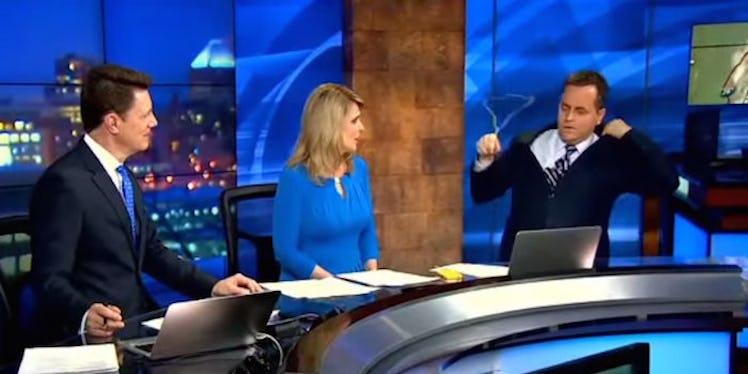 Weatherman Realizes There's Still A Hanger In His Suit Jacket On Air (Video)