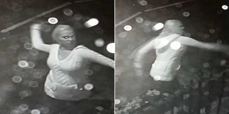 Apparently, the woman on film was drunk and yelling at the building when she decided to ravage the scene.