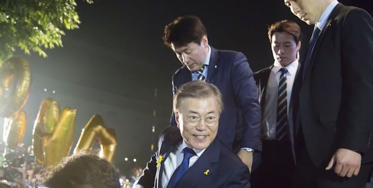 Moon was elected on May 9th. He's a human rights lawyer with a liberal leaning.