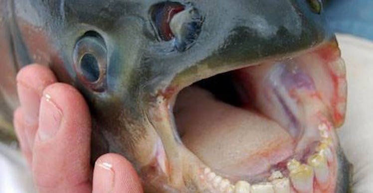 Pacu fish, which can grow up to three feet long, are equipped with square, straight-edged teeth to break open nuts from trees that fall into the water. But their ominous nickname, “The Nutcracker,” refers to a different kind of nut cracking — the kind that involves biting the ball sack of any dude who gets in their way.