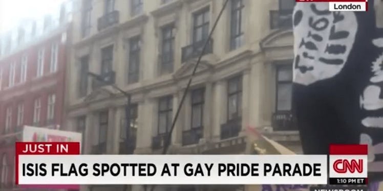 As CNN offered live-coverage of the event in London, it broadcasted a very disconcerting message: "ISIS FLAG SPOTTED AT GAY PRIDE PARADE."
