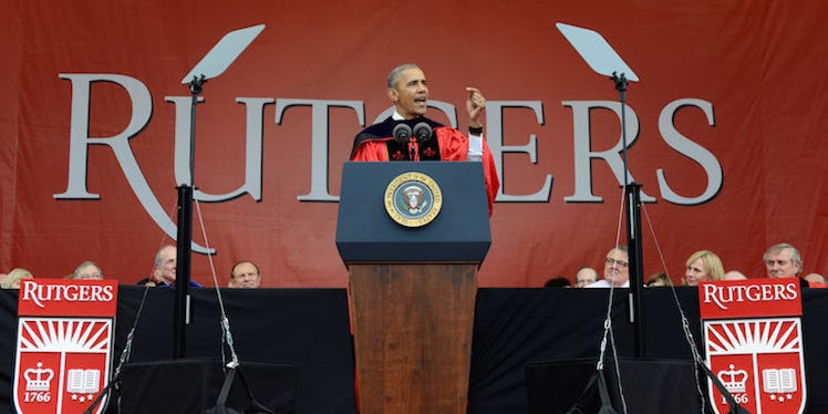 President Barack Obama gave a speech at the Rutgers University commencement ceremony on Sunday.