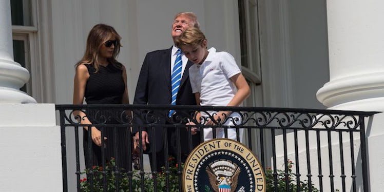 President Donald Trump looked at the sun during the solar eclipse on Monday, Aug. 21, because of course he did. This is a man who's said climate change was a hoax created by the Chinese. You think he fully listened to the warnings from experts about the damage staring at the sun could do to your eyes? No way. That's not how Trump rolls -- he lives on the edge. There are a lot of tweets about Trump looking at the sun during the eclipse and the image seems to be the internet's favorite new thing. Staring at the sun during a solar eclipse can do serious, permanent damage to your eye. There were numerous warnings it's the last thing anyone should do during the eclipse. Trump, however, apparently didn't feel the need to exhibit caution as he enjoyed the eclipse alongside his wife and son. The president was apparently wearing protective glasses at first, but ultimately decided to take them off, according to footage from NBC News. This was not a very intelligent decision. With that said, you can hardly blame people on social media for how they reacted.