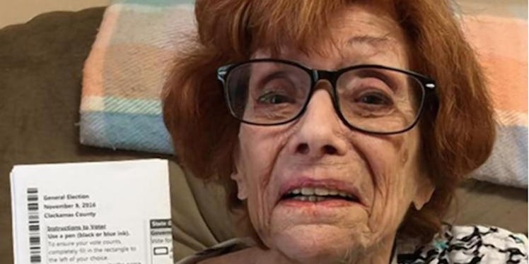 While she didn't to see the first female president, we're happy she was finally given the chance to vote for one.