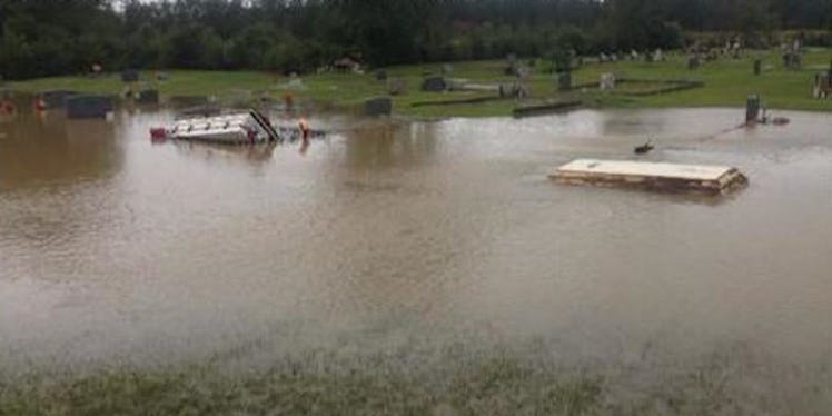 Mashable reports over 400 coffins were also seen floating on floodwater when Tropical Storm Alberto struck Georgia in 1994.