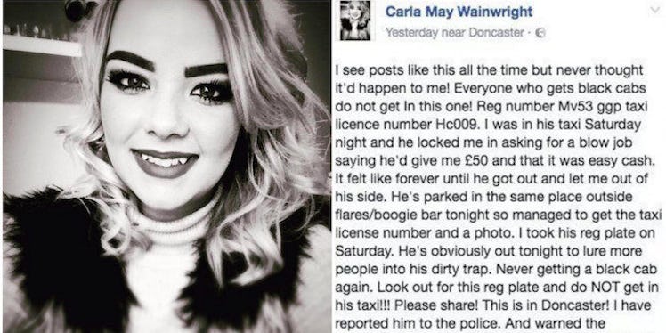 A woman has warned people on Facebook about a taxi driver who allegedly begged her for a blowjob.