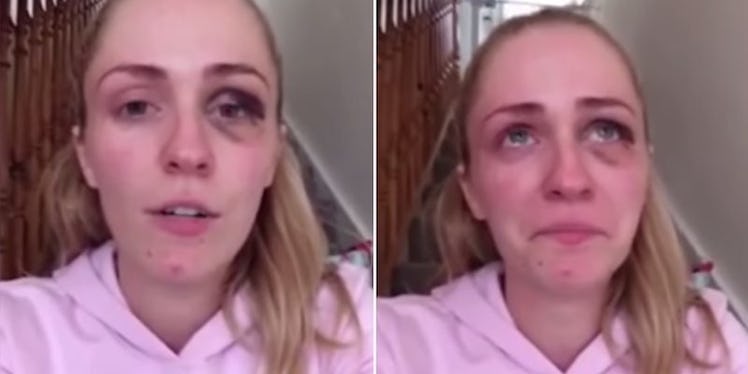 In the video, the mother-of-two tells the story, with a black eye on her face, of how the “love of [her] life” terrorized her both physically and emotionally multiple times.