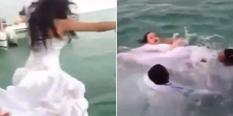 This particular woman, however, decided jumping off a boat into deep water was the perfect way to wreck the gown.
