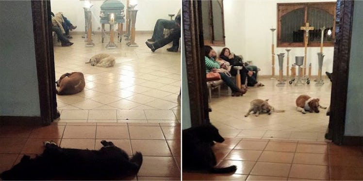 When the elderly woman's body was laid out at a funeral home in Cuernavaca, Mexico earlier this month, several stray dogs came in and laid on the floor as if they were mourning her death.