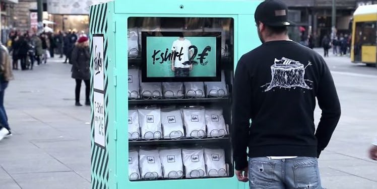 On last week's Fashion Revolution Day, a date that marks the anniversary of Bangladesh's Rana Plaza factory collapse, Fashion Revolution placed a neon vending machine in the middle of Berlin's Alexanderplatz.