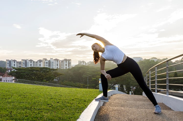 The reason why you should consider doing a few bendy yoga poses after your run (rather than before) is because these bad boys are considered static stretches — aka positions that you hold for anywhere from 10 seconds to a minute, to lengthen your muscles and increase flexibility. According to Competitor.com, static stretches are best done after your cardio sesh because your muscles are warm and lubricated, so there's a significantly lower chance that you'll pull anything or injure yourself.
