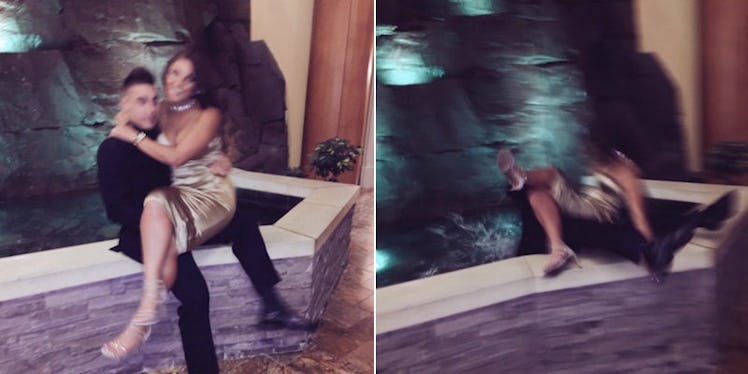 Elaina posted a series of three photos taken simultaneously as she and her boyfriend, Nino, fell backward into the water behind them.