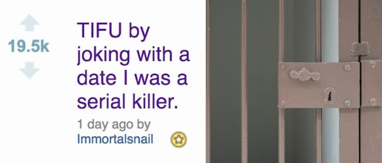 A Reddit user by the name "Immortalsnail" posted a thread in the "Today I Fucked Up" subreddit titled, "TIFU by joking with a date I was a serial killer."