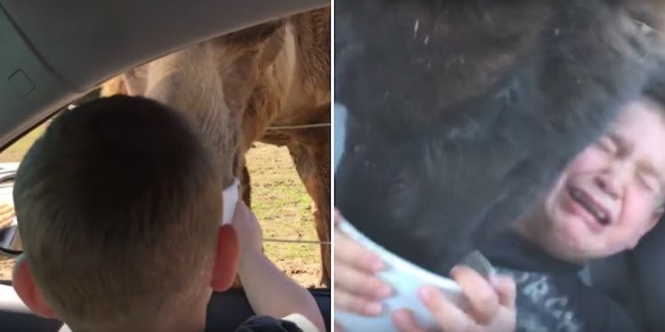 Terrified Kid Screams As A Hungry Llama Puts Its Head Inside Car Window