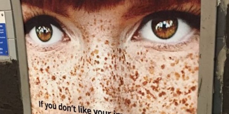 The people of London did not take too kindly to this low-key freckle-shaming. Many people posted signs on top of the ad in protest and shared their anger on Twitter.