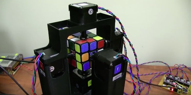 NPR reports, the robot accomplishes this insane trick with a special cube that has small holes drilled into its sides so the robot can maneuver it. It then uses an algorithm called Kociemba to plan out the moves and solve the puzzle almost instantly.