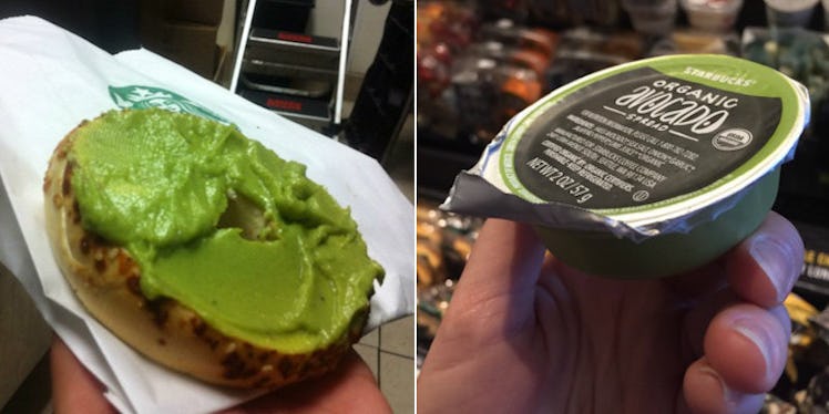 Yup. We've been visiting Starbucks for almost six months without the slightest clue we could indulge in creamy avocado goodness with our bagels and coffee.