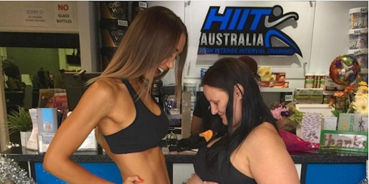 The picture was posted on Instagram about four months ago by Chontel Duncan, an Australian fitness instructor who was five months pregnant at the time of the photo. The woman on the right is her friend Natalie, who was six months pregnant at the time.