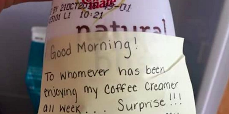 Woman Leaves Savage Surprise For Co-Worker Who Always Steals Her Coffee Creamer