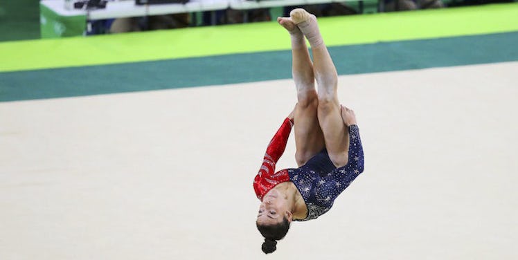 Meanwhile, as part of competition, female gymnasts have to make their crazy difficult work not just look easy, but look beautiful. Little dance steps are expected in floor exercises, as if shimmies are a vital gymnastic step.