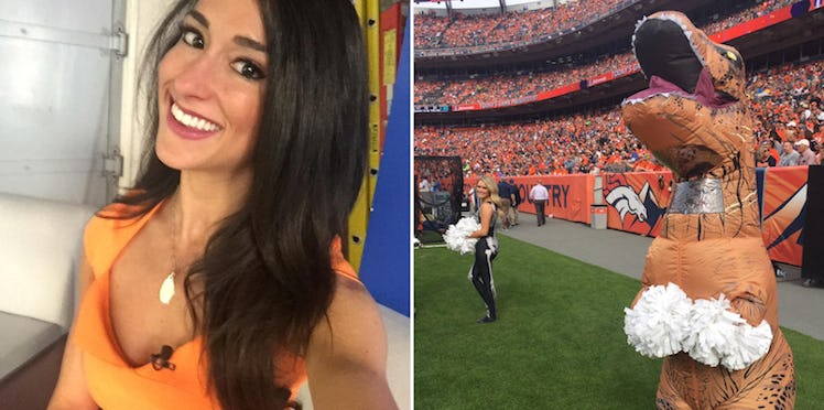 Everyone's Falling In Love With This Broncos Cheerleader's T-Rex Costume