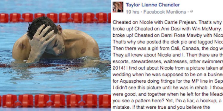 Last November, Michael Phelps' alleged intersex ex-girlfriend, Taylor Lianne Chandler, went on an epic Facebook rant comparing Phelps' sex life to that of Charlie Sheen.